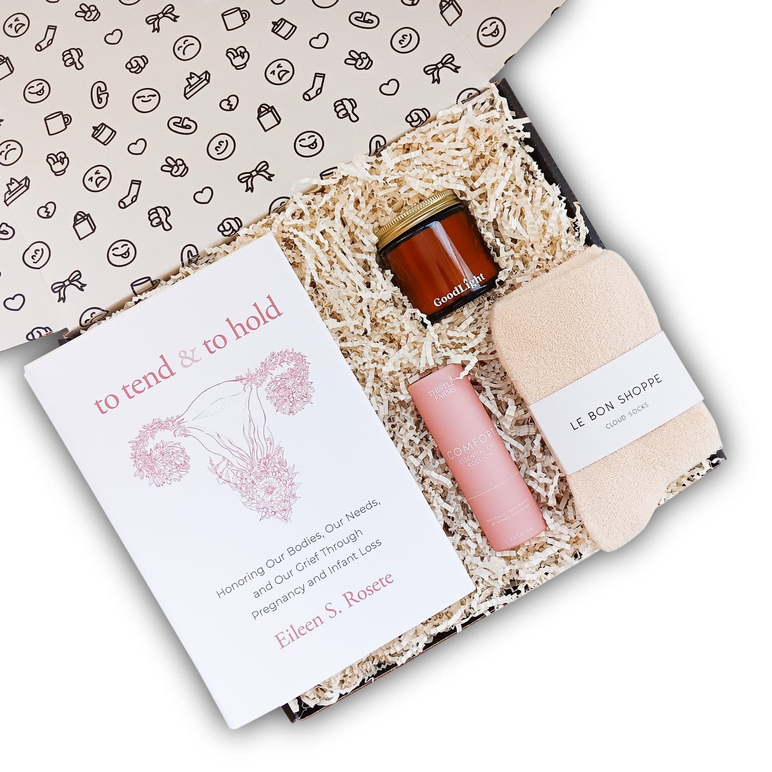 Miscarriage comes with emotions more complex than the Fibonacci sequence that it's no wonder people don't know where to start. This miscarriage care package contains a 100 page journal with prompts to help process the emotions that come in the days and weeks after losing a baby. The cozy socks, therapy dough, lip balm and Chill Mode eye patches are the perfect accompaniment to put the pen to paper and work through their grief.