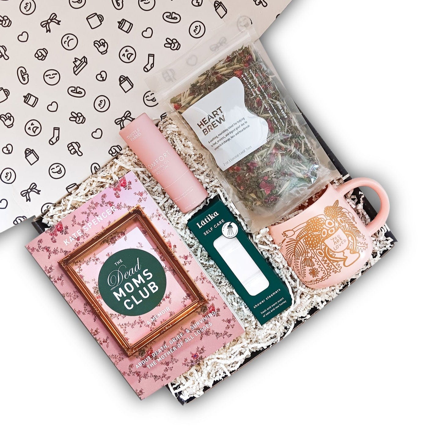 Welcome to the Dead Moms Club - the club no one signs up for, yet far too many belong to. While nothing can undo such a monumental loss, this sympathy care package is designed to wrap someone in comfort and remind them they are loved. Inside, they’ll find soothing essentials like a comforting essential oil roll-on, nourishing loose leaf tea, and shower steamers to create small moments of self-care. A heartfelt memoir offers honest companionship through grief, while the “You Are Loved” mug serves as a daily reminder as they make their way through the book and grieve the mother of all losses.