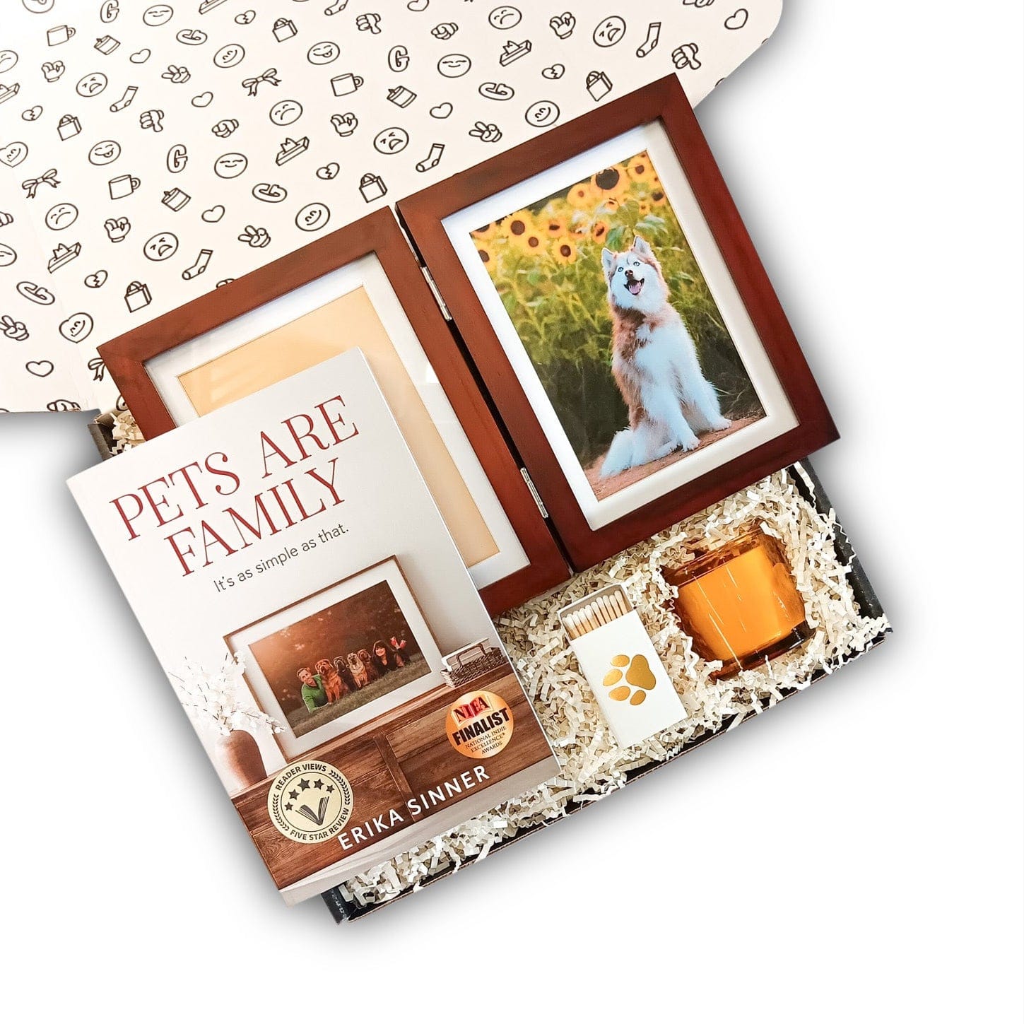 The Pets Are Family care package is a heartfelt way to honor a beloved pet. Inside, you’ll find a sunny honeysuckle votive to brighten quiet moments, a keepsake photo frame and clay impression kit to capture a treasured pawprint, elegant gold-foil pawprint matches, and a signed copy of Pets Are Family by Erika Sinner - an inspiring advocate for pet-loss bereavement in the workplace. Thoughtful, comforting, and beautifully packaged, this gift celebrates cherished memories while offering gentle support.